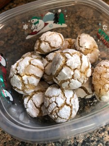 Preheat the oven to 350 F and line two baking sheets with parchment paper. Place the confectioners’ sugar in a small bowl and the remaining 1/2 cup sugar in another small bowl. Scoop 1 tablespoon of the dough and roll into a bowl. Roll the dough in the granulated sugar and then in the confectioners’ sugar. Place on the prepared on the baking sheet, spacing the cookies about 1 inch apart.
