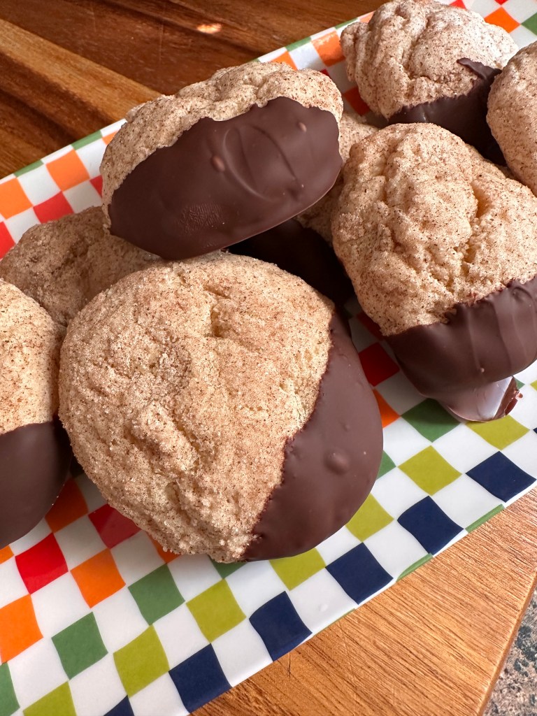 Once the brown butter is cool these cookies come together quickly and easily. Simply mix the dry ingredients together in one bowl, the wet ingredients in another and then fold together the two to form the dough. After refrigerating the dough for about 15 minutes – to prevent the cookies from spreading while baking – roll in a cinnamon sugar mixture and then bake. After cooling you will have the perfect cookie to enjoy with a hot cup of cocoa, tea or coffee for the cold days ahead!