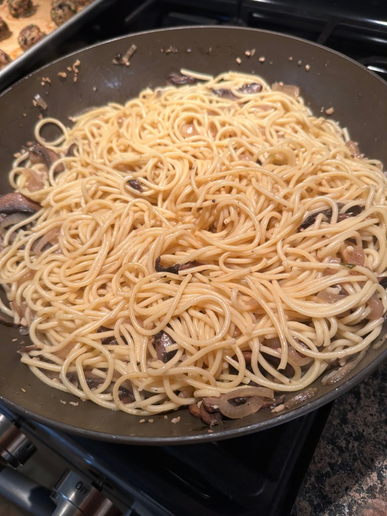 A few of the recipes I saw called for chicken breasts, but I opted to use boneless skinless chicken thighs instead as I find chicken thighs absorb the flavor of a dish better (especially sauces) and they do not dry out as easily as chicken breasts does when slightly overcooked. And while I did plan on using Lo Mein noodles, they weren’t available at my local supermarket so I went with Linguine instead, you could also use spaghetti if you have a preference. One other change I made was the oil I used. Most of the recipes I saw online called for sesame oil, I used canola oil instead. Simply because I had it on hand and I knew it was a good substitute.