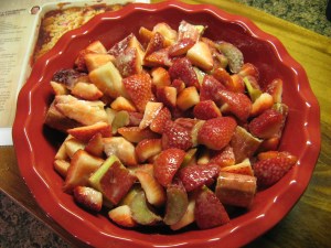 Once the peaches and other ingredients were mixed together well – I made sure that the peaches were coated by the mixture – I transferred them to my dish along with any juices that remained.