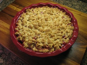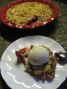 After baking it in a 350 F preheated oven for about an hour I let it cool on a wire rack. Once cooled I covered it with aluminum foil and refrigerated it. To enjoy, I heated it up a spoonful or two and topped it with vanilla ice cream.