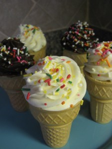 Frost the cupcakes using your desired method and then top with sprinkles and/or crushed candies.