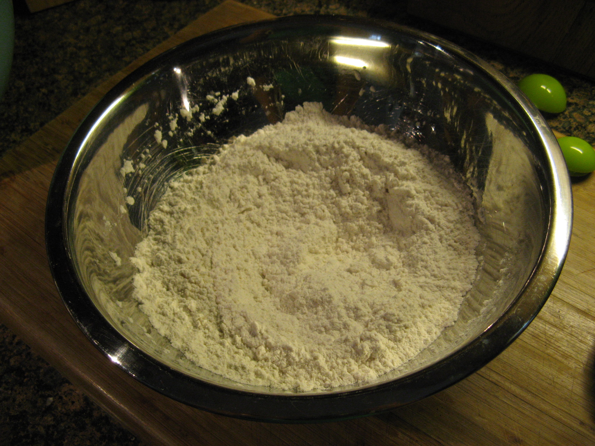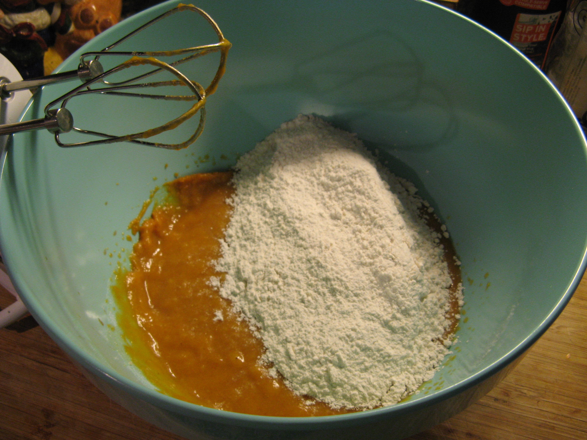 I began by making the batter. In a large bowl I whisked together flour, sugar, baking powder and salt. Next, I added in lemon zest, eggs, whole milk ricotta cheese and vanilla extract and continued whisking until the ingredients were well combined.