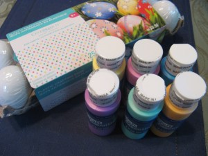 Next, I removed the eggs from the whipped topping and placed them in a bowl of water to clean them off. You don’t want to wipe the whipped topping off with a napkin as this could rub the colors off as well. After rinsing the eggs off I placed them on paper towels so they could dry off and then placed them back in the egg carton.