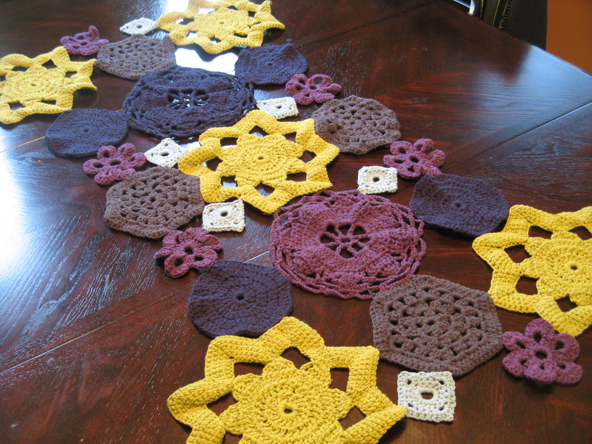 Using the ladder stitch I stitched together six triangles to form one unit and then stitched four more triangles to that unit to add on a second unit. I then added triangles to each of the end units, once again via the ladder stitch.