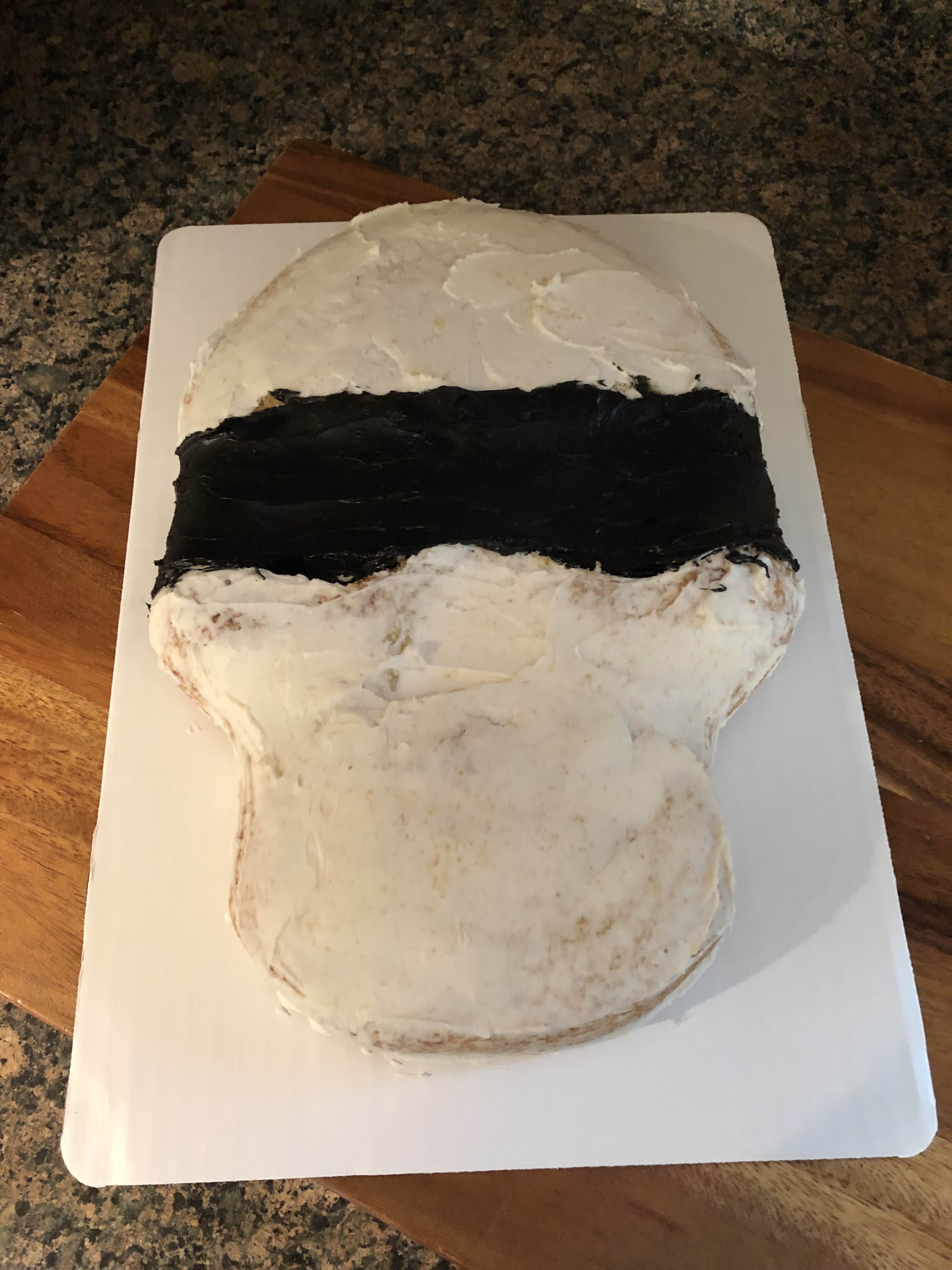 Once the cake had chilled for a bit I added more black frosting to the cake and was able to smooth the icing.