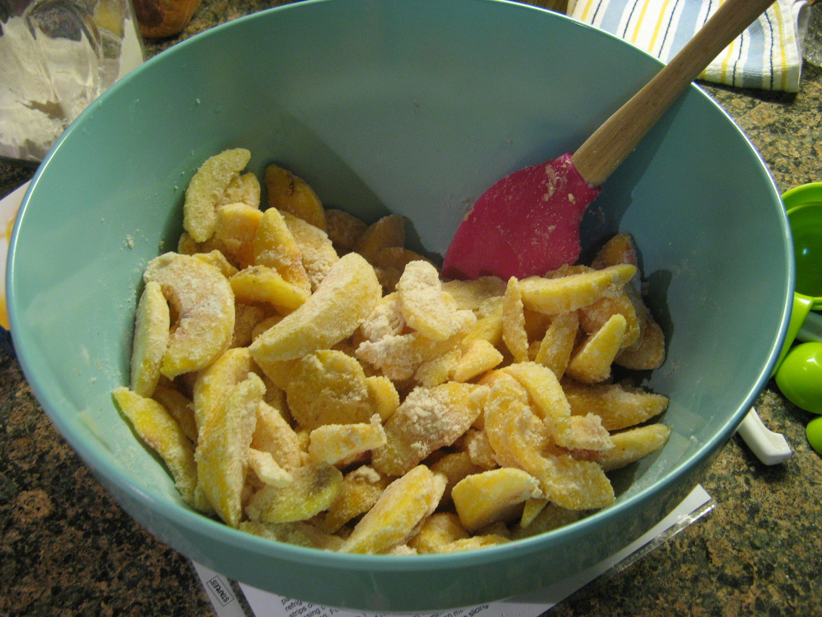And then sprinkled the crumble topping on top before baking in a 375 F preheated oven.