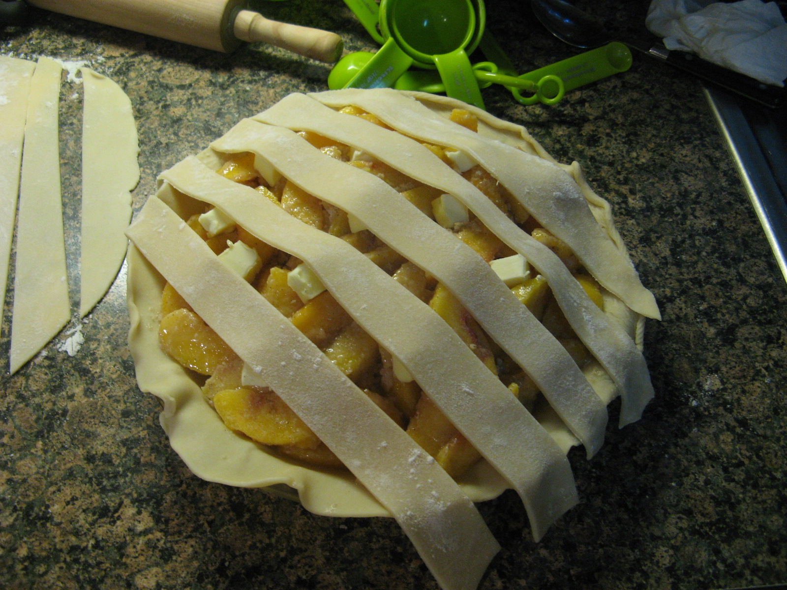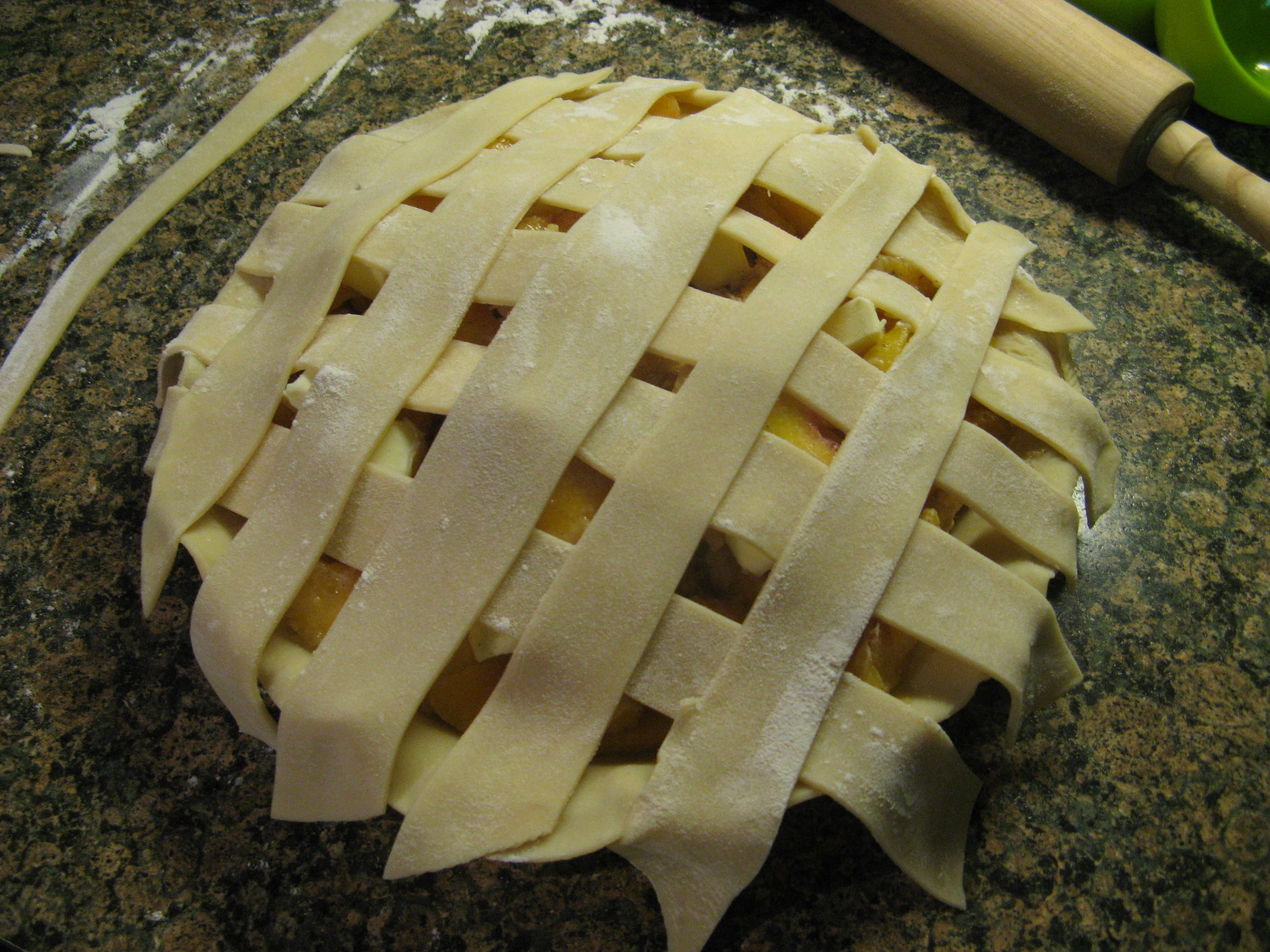 As I am sure I’ve mentioned before I normally use store-bought pie crust. It’s fool-proof and it saves time. Before making the filling, on a lightly floured surface (my countertop) I rolled out a store-bought pie crust and an extra inch or so. I then placed it in a 9-inch pie dish and crimped the edges. To make the filling, I gently mixed fresh blueberries, blackberries and raspberries together along with light brown sugar, sugar, lemon juice, cornstarch, cinnamon, freshly grated nutmeg and salt. I started off using a wooden spoon but quickly switched to a rubber spatula to avoid breaking up the berries. I wanted most of them to remain intact during baking so the pie would still look appealing once done and have some texture to it.