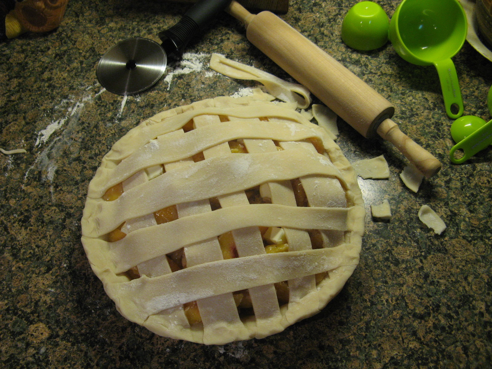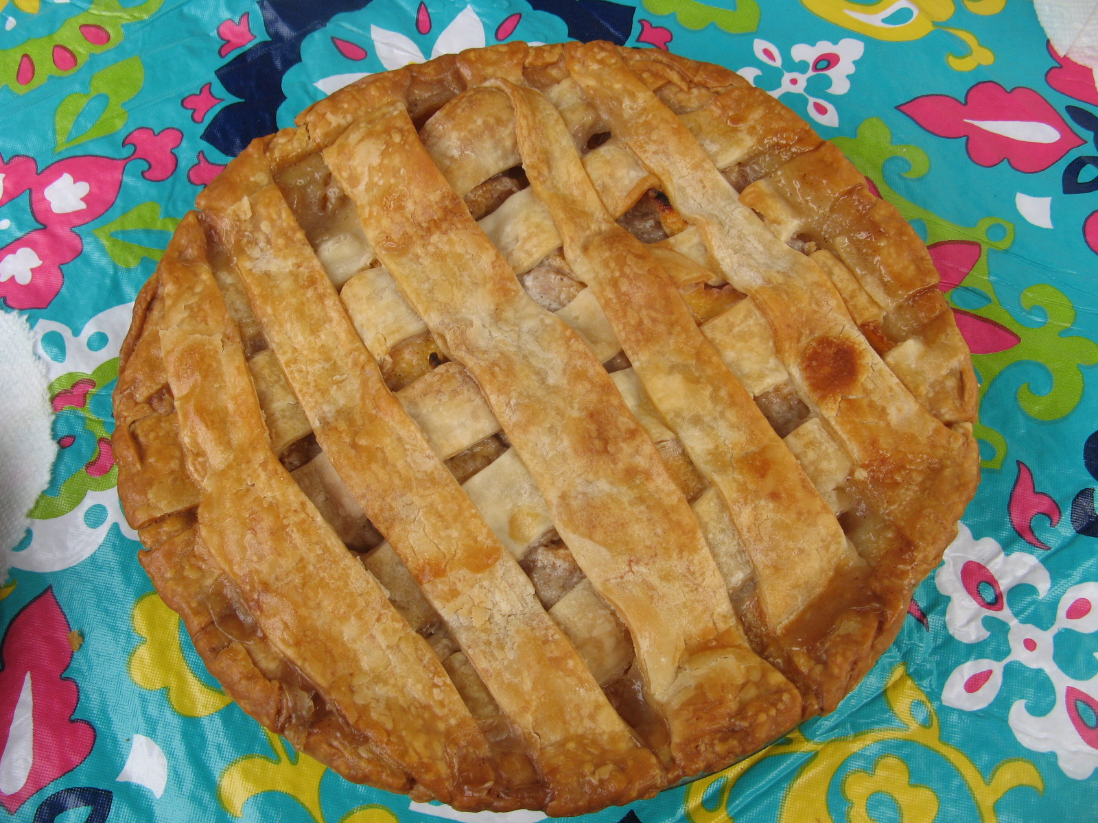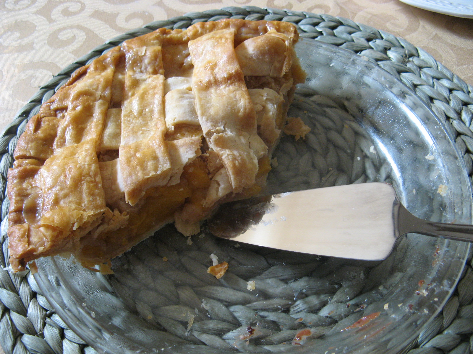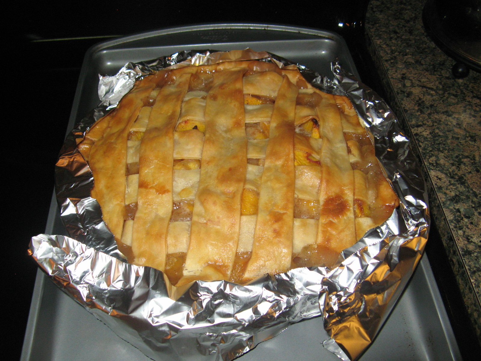I checked on the pie after 25 minutes and noticed that the edges of the crust and the topping were beginning to brown, so I tented it with a piece of aluminum foil until to prevent it from burning. After about another 40 minutes the pie was ready. The crumble topping had a nice golden color and the filling had just started to bubble.