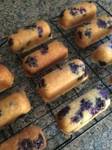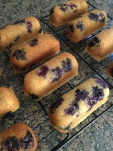 Fold in the blueberries and pour batter into the pan. For the snack cake pan use about 3 tablespoons of batter per cavity, for cupcakes 1/4 cup of batter.