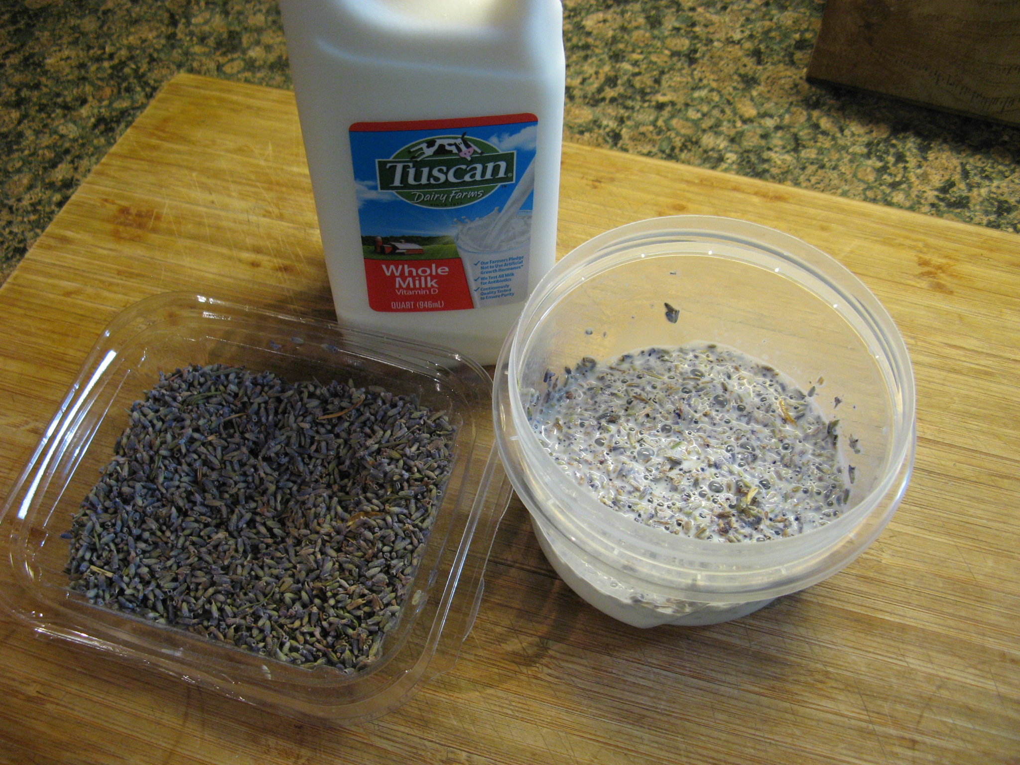 To start I soaked 3 tablespoons of dried lavender in whole milk in the refrigerator for eight hours.