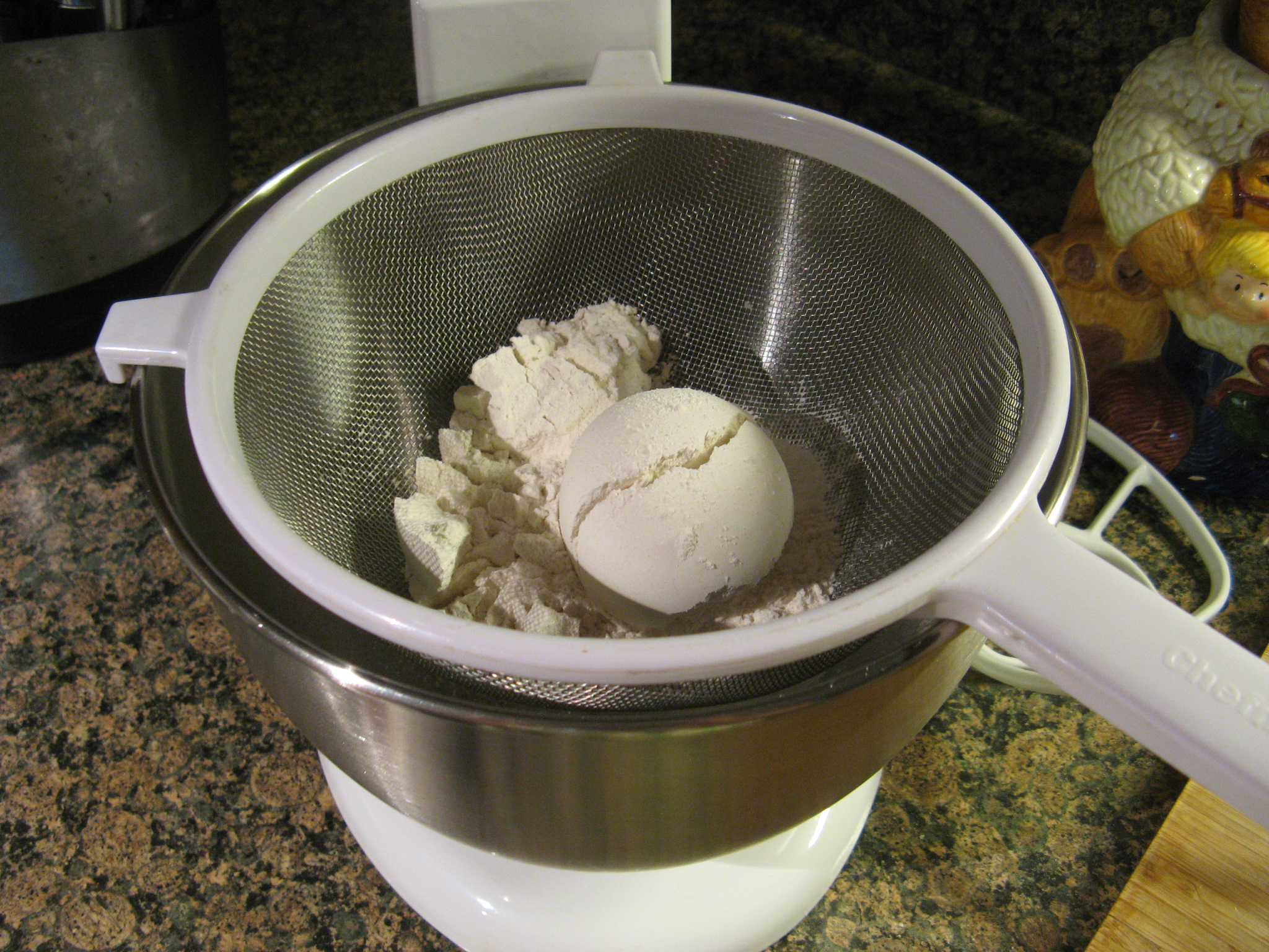 4) In the bowl of your stand mixer (or mixing bowl if using a handheld mixer), sift together the flour, baking powder, and salt.