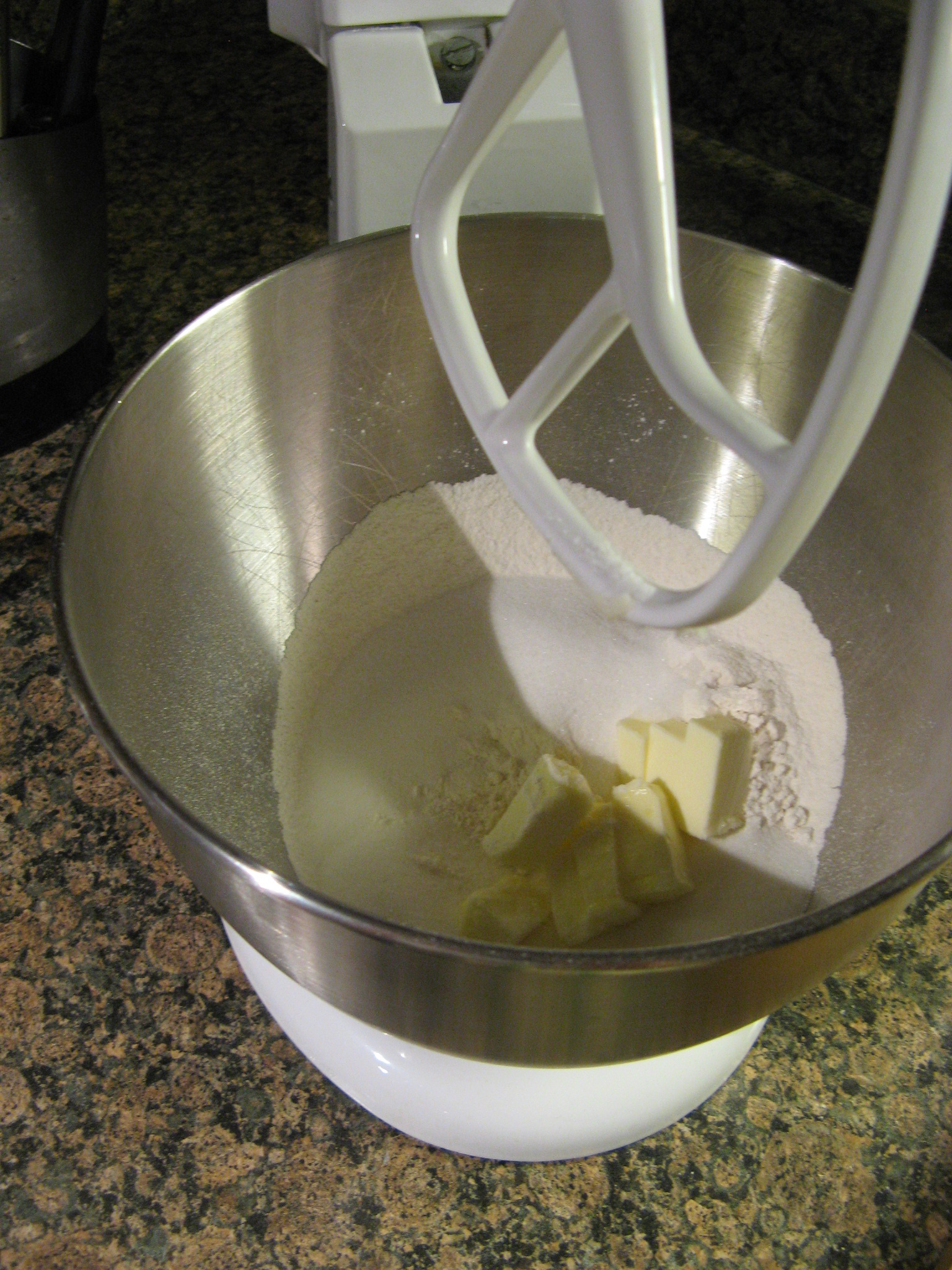 I then added in softened butter and sugar and mixed all the ingredients together until the texture of the mixture was sand-like.
