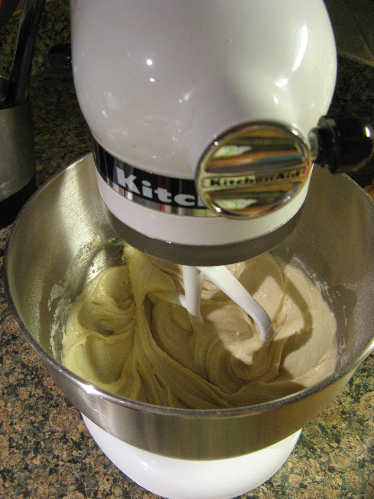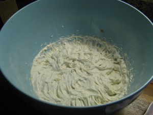 While the cupcakes cooled I made the frosting. I decided to try something completely new and opted for a Mascarpone Frosting which simply consisted of mascarpone cheese, heavy cream and confectioners’ sugar.