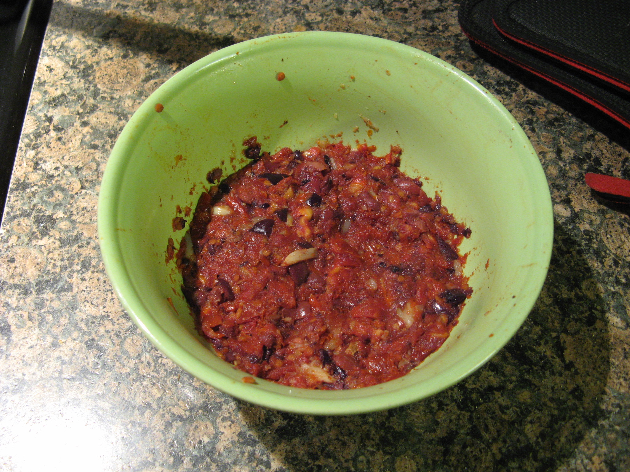 And then let the machine run while I drizzled 2/3 cup of olive oil into the mixture.