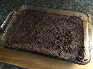 When I read the reviews for these brownies I had some reservations about making them, but, I realized that the issue most people were having was that they weren’t reading the directions properly. They kept saying that they added eggs to the mixture, but, nowhere in the ingredient list were eggs mentioned. After a few more seconds of thought I realized what most people were doing wrong. They were preparing the batter for the brownies as the directions on the box instructed them as opposed to just using the flour mixture itself. That’s the key to dump cakes. You are not preparing the batter for the box mix, but, just using the flour mixture from it.