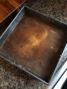 Pour half of the batter into the prepared pan and then sprinkle 1/3 cup of the cinnamon sugar evenly over the top of the batter and then pour the remaining batter into the pan.