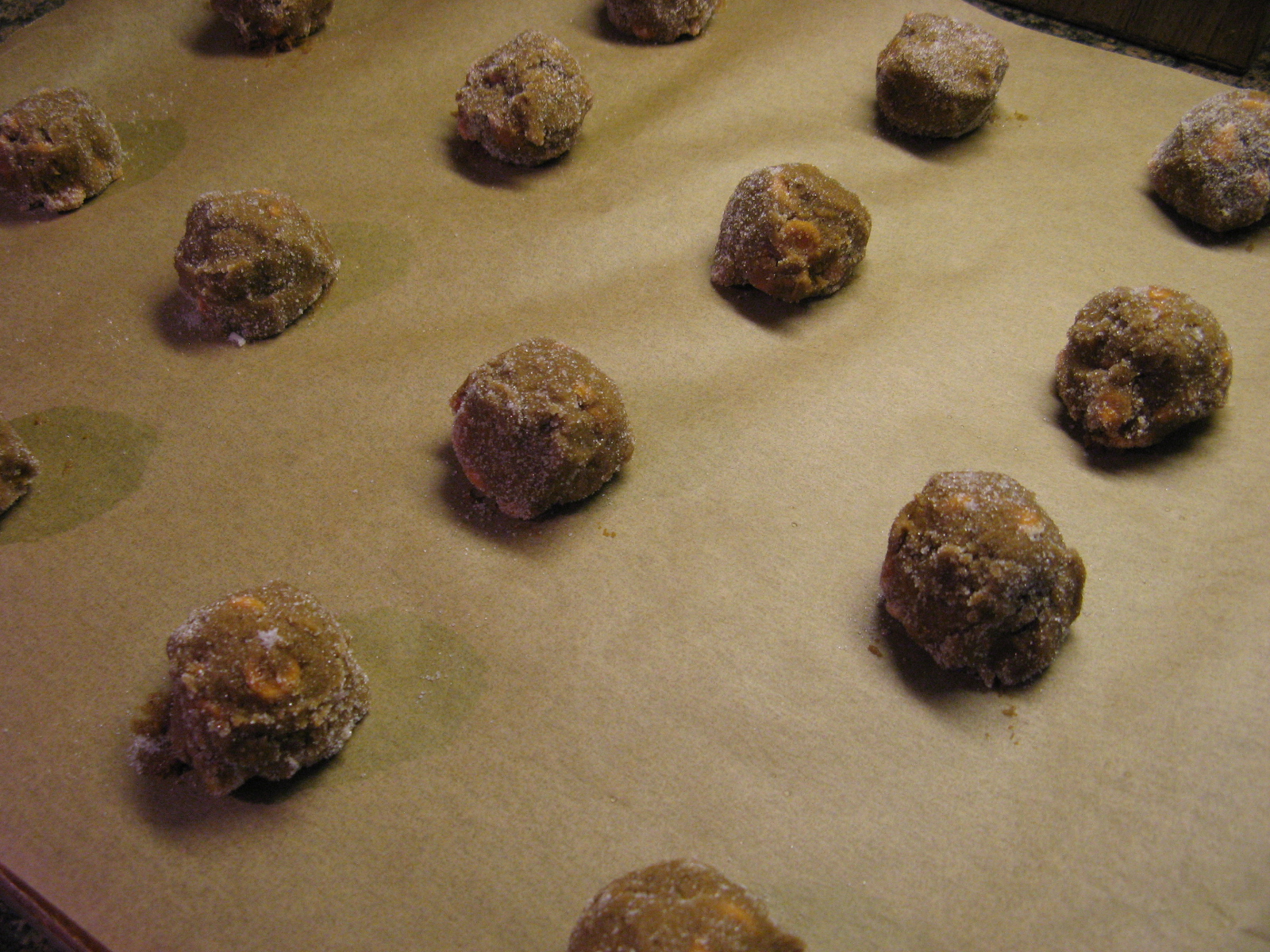 Use a large cookie scoop (i.e. ice cream scoop) or 1/4 measuring cup to scoop out the dough and then roll in the sugar coating. Place on the prepared baking sheet about 3 inches apart.