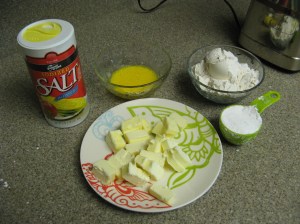 To make the Pecan Pumpkin Frangipane Tart I started off by making my crust. Using a store bought crust for this tart just wouldn’t be the same. Using a food processor I pulsed together the following ingredients: salt, eggs, flour, confectioners’ sugar & butter.