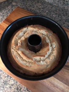 In a large bowl combine the ingredients for the cake and using a handheld mixer beat on medium speed until smooth. Transfer to the Bundt pan and bake the preheated oven for 50 – 60 minutes, or until a cake tester inserted in the center comes out clean.