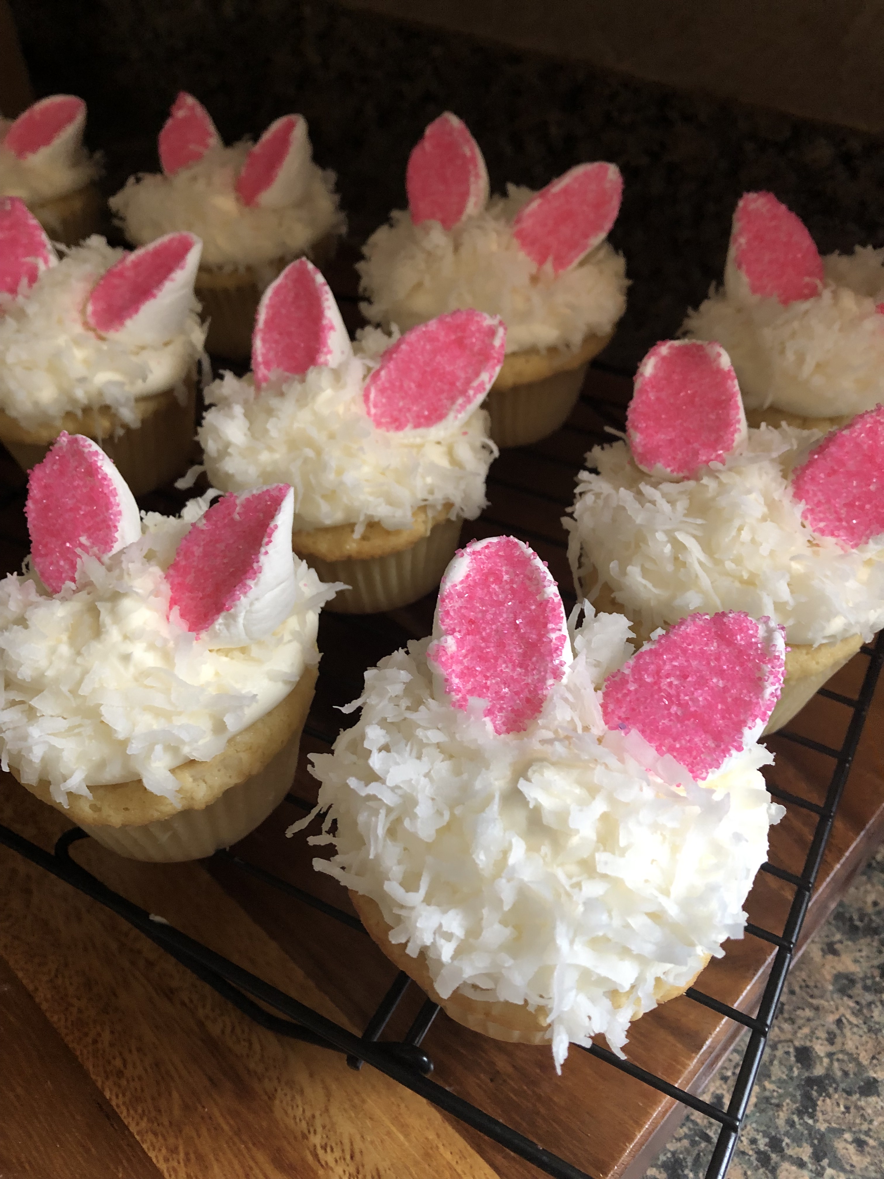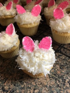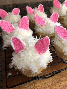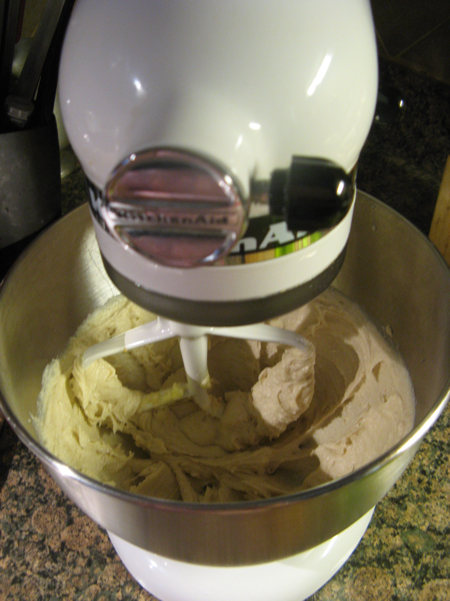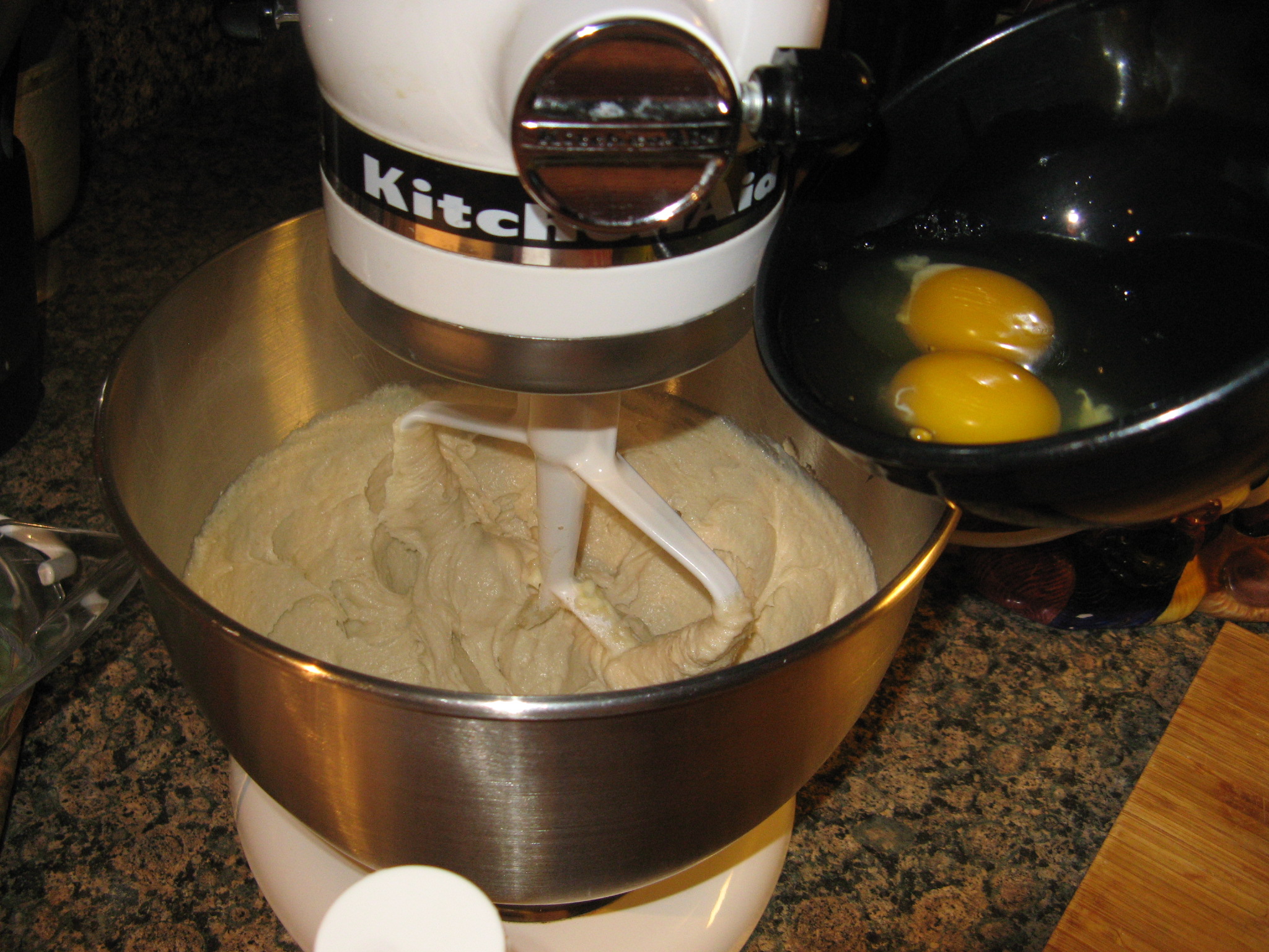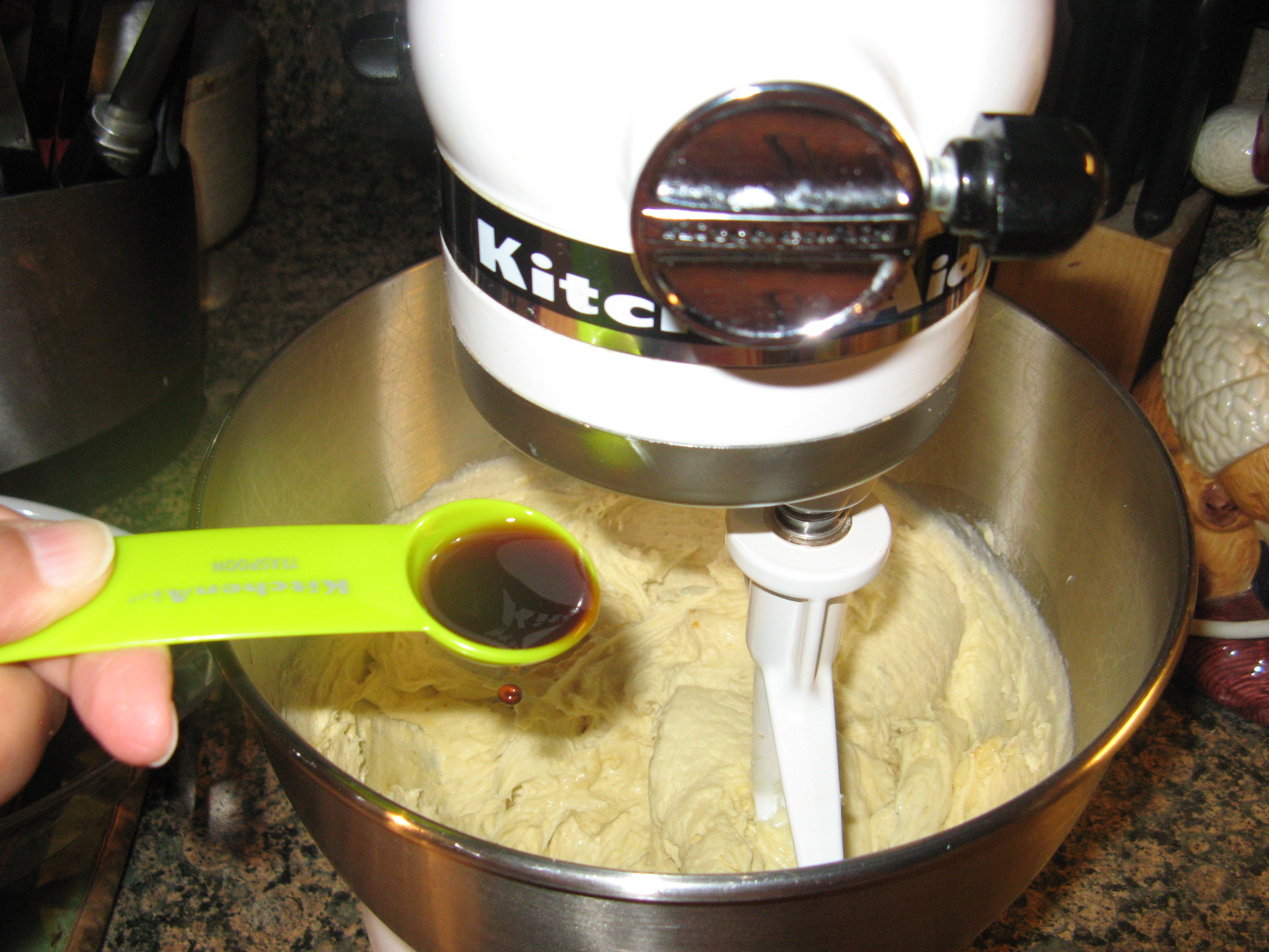 In a large bowl cream together the butter and both sugars with a hand mixer on medium speed. Add the eggs, 1 at a time. Add the vanilla and coconut extract and beat until everything is well combine.