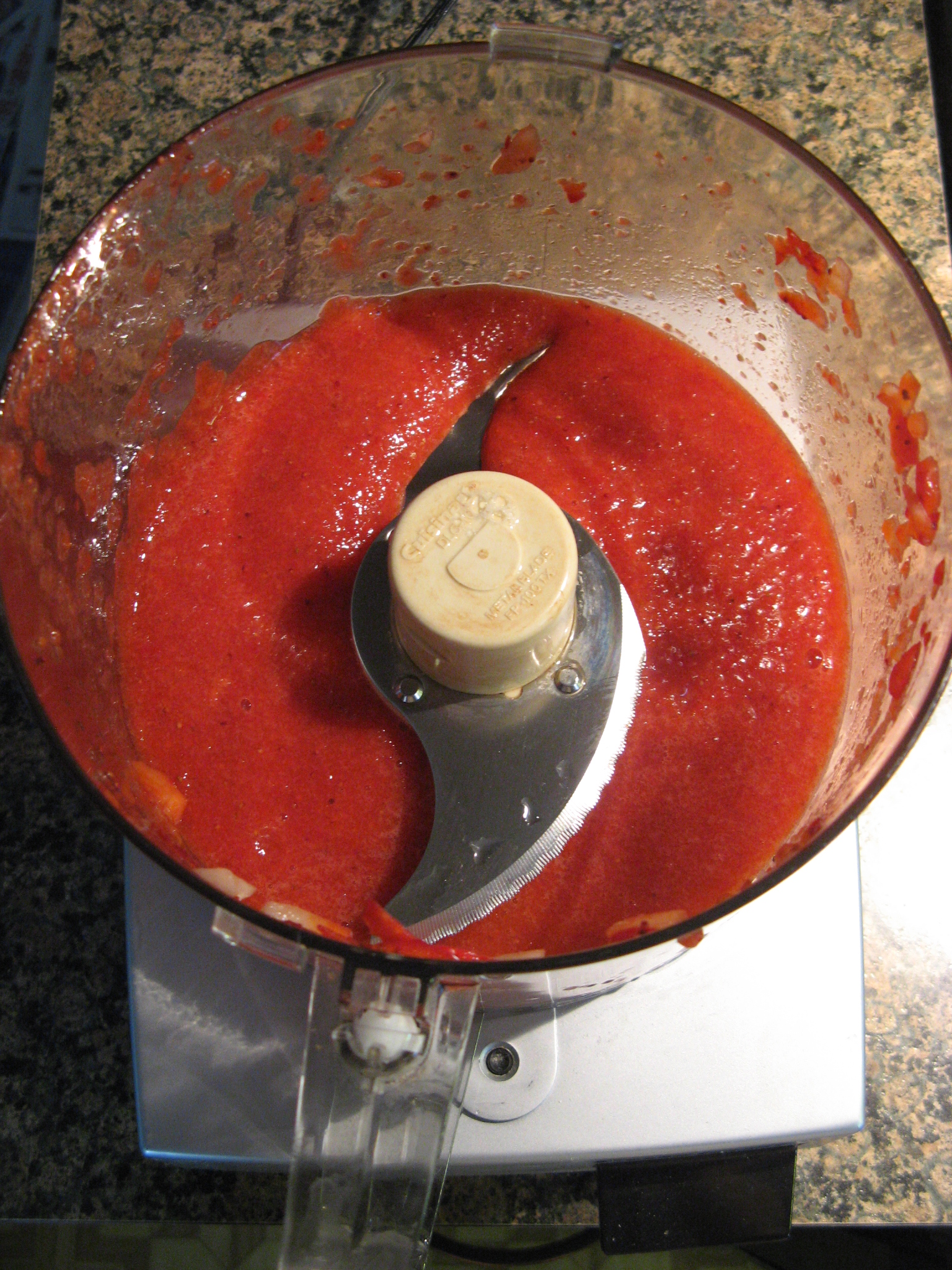 2. Place strawberries in a small food processor; process until pureed. You should have 1/3 cup of puree, add a few more strawberries if necessary.