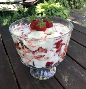 The other steps for this dessert are just as simple. Combine sliced strawberries with sugar and refrigerate for at least 2 hours so the berries can release their juices. And whip up a batch of fresh whipped cream with 3 simple ingredients – heavy whipping cream, confectioners’ sugar and vanilla extract.