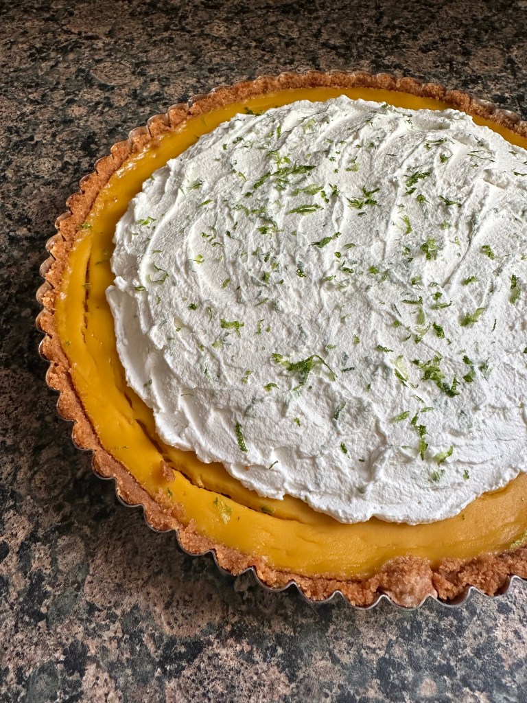 But it was nothing that a little whipped cream and lime zest couldn’t cover up and besides it didn’t alter the flavor of the tart one bit. It was delish! Not too sweet and the mango flavor was spot on!