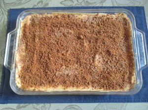 Tiramisu is one of my favorite desserts, but whipping up a whole batch is just too much. I recently came across a recipe for Tiramisu for Two in the recent issue of Real Simple magazine that I thought was perfect to try – after I basically switched up all the ingredients to be reminiscent of my favorite tiramisu recipe. I used mascarpone cheese instead of cream cheese, Kahlua instead of bourbon or rum and completely omitted the raspberries the recipe called for. What I ended up with though was a delicious tiramisu that took less than 20 minutes to prepare.