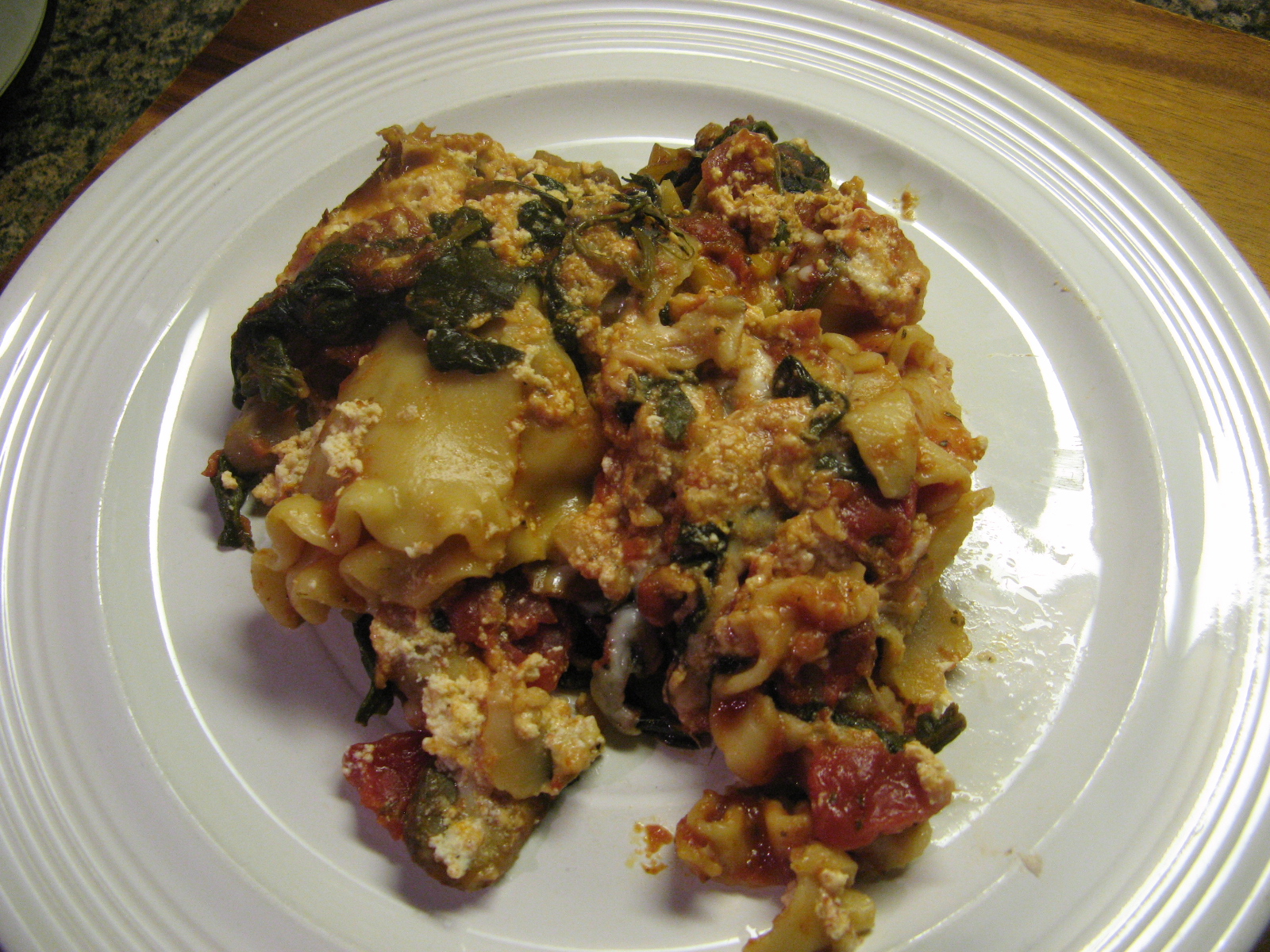 I then topped the cheese with another 3/4 cup of the sauce and the remaining 3 lasagna noodles and finally the remaining sauce.