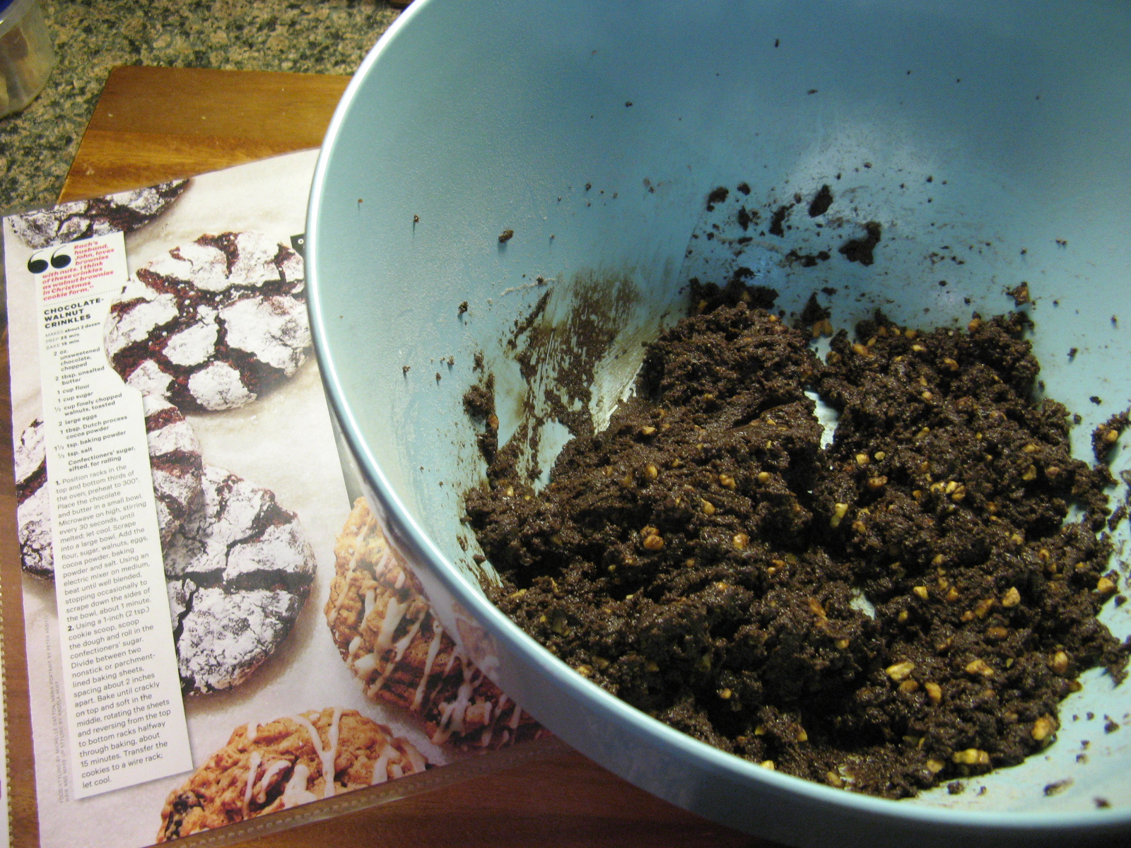 On this third day of Cookie Palooza I bring you a cookie that I have made before… a chocolate crinkle cookie. This version though is a bit simpler to make and it has walnuts. I love walnuts in cookies and brownies.