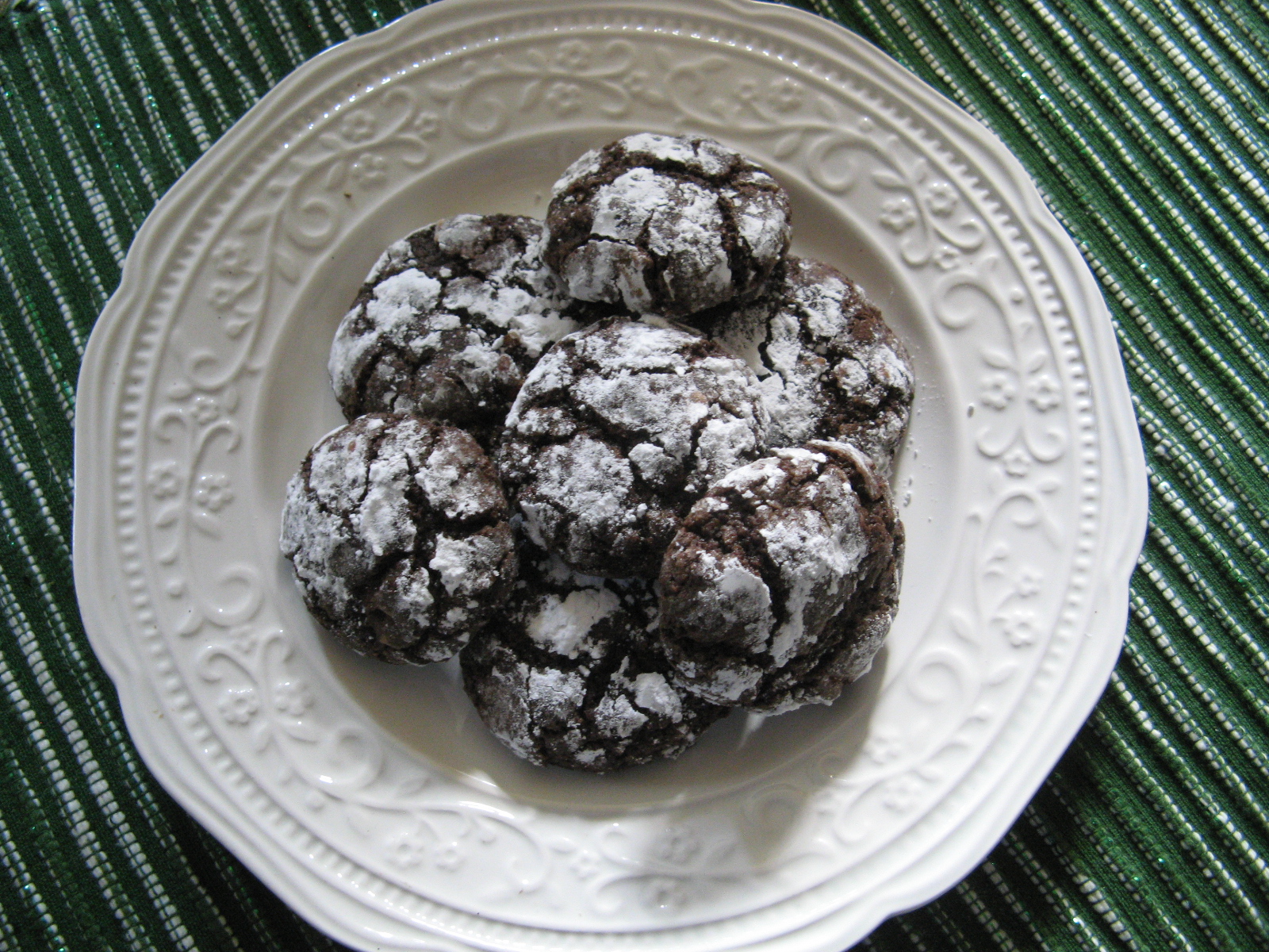 The Christmas Cookie fun continues with today’s Chocolate Crinkles. Now, I know the cookie recipes I’ve posted earlier – Rosemary and Pine Nut Cookies and Orange Scented Elephant Ears – aren’t your traditional holiday cookie recipes, but, these are definitely in line with what you see around the holidays. I’ve seen recipes for these cookies for quite some time, I probably have 1 or 2 saved in my recipe binder, but, it wasn’t until I was flipping through a Christmas Cookie recipe magazine recently that I finally decided to try them out and I wish I had tried them sooner. They are a cinch to make and delicious… Chocolatey without being overpowering.