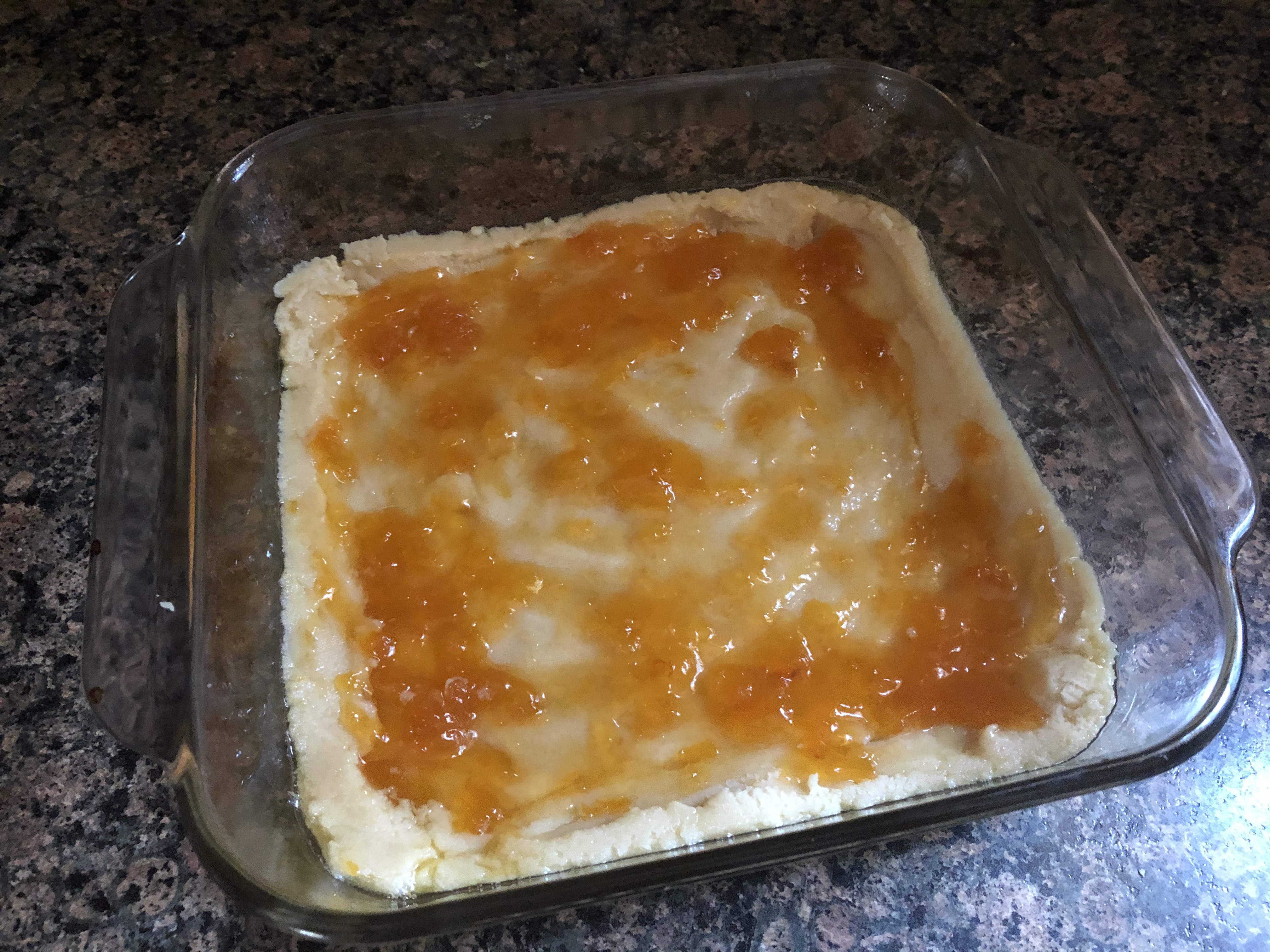 Next, I spread a few tablespoons of apricot preserves over the dough.