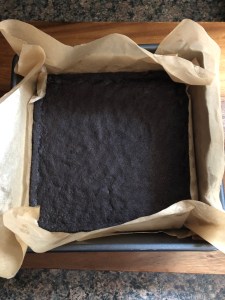 Using a double boiler or microwave melt the chocolate. If using the microwave, melt in 20 second increments, stirring after each one until the chocolate is completely melted and smooth. If using a double boiler, once you see the chocolate is beginning to melt begin stirring it to smooth it out. Once the chocolate is melted set it aside so it can cool while preparing the remaining components of the bars. Do not allow the chocolate to harden though.